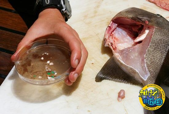 研究人员在对发现于大西洋的一条死鳞鲀鱼解剖后,从它的腹中找到了47块塑料碎片(图片提供:David M. Lawrence, SEA)