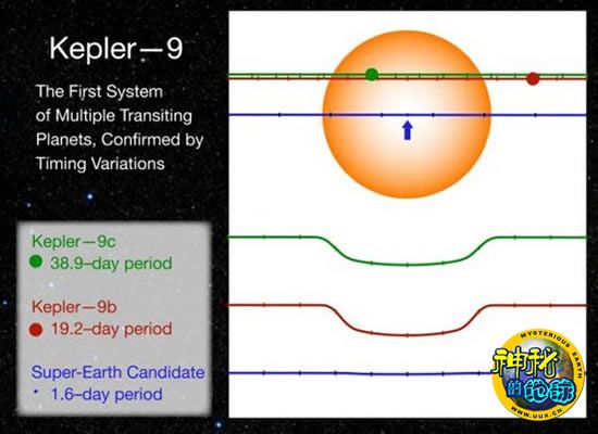 在这项发现中,开普勒-9b的质量略大一些,其环绕恒星运行一周的时间是19.2天,而开普勒-9c环绕恒星运行一周的时间是38.9天。科学家声称,在更深入的勘测分析中将揭晓第三颗神秘类地行星的面纱。