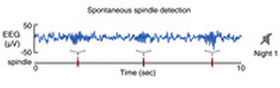 当研究人员将受试者睡眠纺锤波的形成——每分钟3到6个纺锤波,并持续一整晚——与唤醒他们的音量相匹配后,他们发现,那些纺锤波频率更高的睡眠者更难被唤醒。睡眠纺锤波似乎代表着丘脑当时正在阻止噪音到达大脑皮层乃至扰乱睡眠。研究小组在8月10日出版的《当代生物学》杂志上报告了这一研究成果。