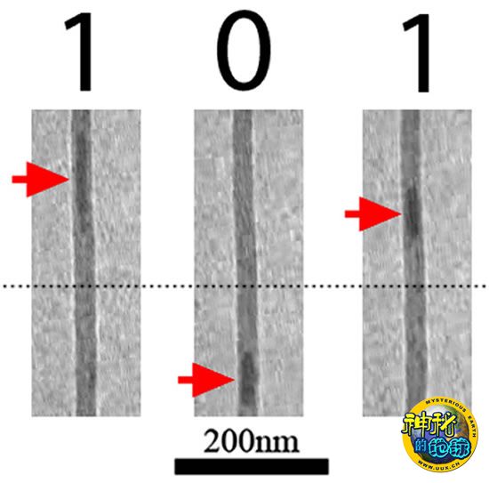 为了找到一种更为持久地存储数据的方法,一个由物理学家和材料学家组成的团队将研究的范围缩小到了纳米尺度。据5月份出版的《纳米快报》报道,研究小组开发出了一种技术,能够将只有几十亿分之一米宽的铁单晶放入一个空的纳米管的内部。就像钻石一样,纳米管是现有最稳定的结构之一。一旦进入纳米管,铁的纳米晶体便担当起了数据位的作用——作为对电流的响应,它们能够从纳米管的一端滑动到另一端,同时在这一过程中,在计算机的二进制预言中寄存一个“1”或一个“0”。参与该项研究的美国加利福尼亚大学伯克利分校的物理学家Alex Zettl表示:“从电子的角度说,没有什么比这更容易了。”