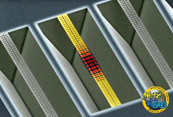 这也正是美国帕萨迪纳市加利福尼亚理工学院(Caltech)的一个研究小组试图要解决的问题。首先,研究人员制造了一对外部覆盖着硅微芯片材料的厚度仅为几百纳米的支架。随后,他们利用化学手段在每个支架的表面腐蚀了一连串的小洞。研究小组将这一装置称为“拉链空穴”,这是因为它与一个拉链看起来很像。研究人员在2009年5月14日出版的《自然》杂志上报告说,这些小洞能够引导和捕捉激光束的能量,同时使装置产生振动。而振动的频率取决于激光轰击支架的强度,参与该项研究的Caltech的物理学家Oskar Painter这样表示。