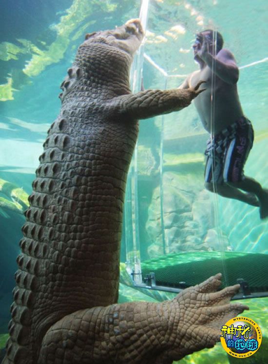 想过与世界上最凶残的鳄鱼同池戏水吗?一想到这种恐怖的大型食肉爬行动物,相信许多人都会不寒而粟,更不敢与其面对面亲密接触。不过,在澳大利亚达尔文市,有一家与众不同的主题公园--鳄鱼峡谷主题公园,该公园为喜爱挑战和追求刺激的游客提供一项特别的服务,游客可以进入鳄鱼池中与这种世界上最致命的食肉动物近距离相会。