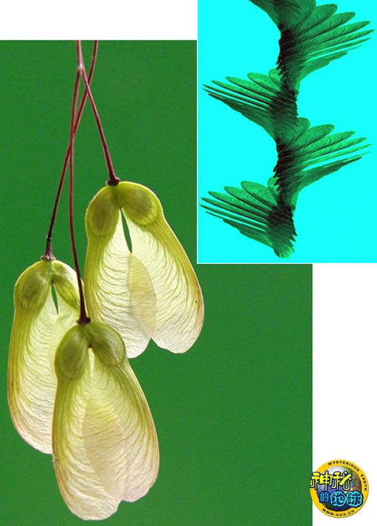 这些种子在落下时会裂开,并通过旋转产生升力,从而减缓其下落。
