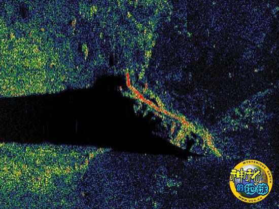 “泰坦尼克”号狭长“阴影(图片来源:Photograph courtesy Premier Exhibitions, Inc. and Woods Hole Oceanographic Institution)