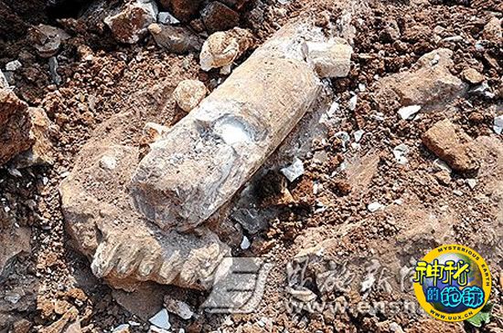 9月1日,接到老司城村民报告后,李家河乡文化站有关负责人赶至老司城村一组,发现村民所说的岩石呈白色,被损坏的零碎岩石放在手里比同样大的岩石重量明显要轻得多。宣恩县博物馆馆长段绪光接到通知后,迅速组织人员到达现场开展文物鉴定和进一步发掘工作,并找新建房农户及几个瓦工师傅详细了解情况。经仔细鉴别,宣恩县博物馆工作人员认定发掘物为50万年前的雄性大象化石,化石已残缺不齐,遗留部分长约80公分,为大象的门牙和臼齿。