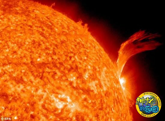 昨天太阳动力学观测卫星获取的太阳日珥照片。这些抛射出的等离子体将会被加热到数百万度。