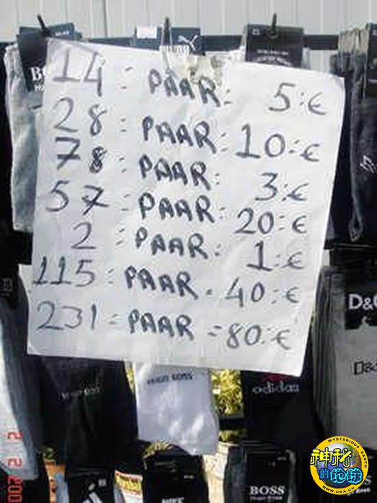 土耳其Manavgat,奇怪的买袜子人。按他的标示,你知道他是怎么卖得吗?