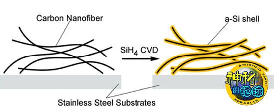 因此在最近的研究中,崔屹的研究小组用外层覆盖了非晶硅的碳纳米线取代了脆弱的硅纳米线。碳芯固有的稳定性使得研究人员可以让非晶硅带满锂离子。结果,这种新的碳—硅混合阳极拥有了6倍于传统全碳阳极的充电能力,早期的测试中,它们也比全硅阳极表现的更稳固。该结果发表在《纳米快报》上。利用这项成果,电池公司最终将能生产出更轻量的电池,这也是将来制造电动汽车的关键。崔屹指出,电池公司还可以在在保持电池重量的条件下,增加50%的储电量。