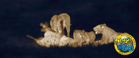 “暗夜杀手”:非洲狮群夜间捕食 来源: 蜘蛛网 时间:2010年9月14日 11:17 2. 狮群围攻斑马 狮群围攻斑马 在肯尼亚马赛马拉国家公园,一群雌狮正在撕咬一只斑马。本图采用热成像摄影技术,没有采用人工照明。 上一页123456下一页 上一篇 下一篇