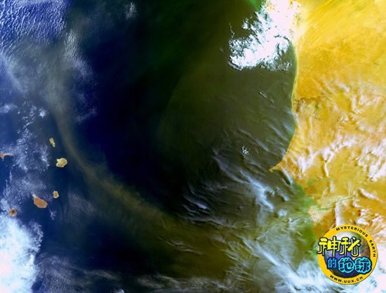 欧空局Envisat卫星捕捉到“西游”中的撒哈拉沙尘暴,这条羽状沙尘带可以到达南美洲并为亚马逊热带雨林补充养分