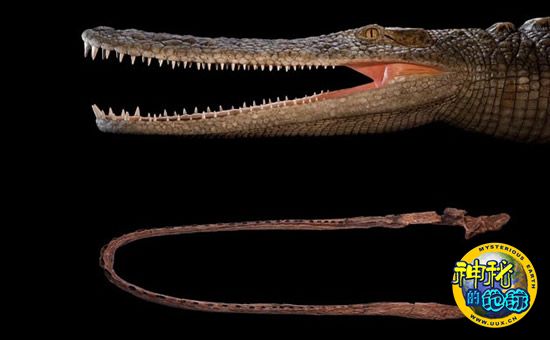 然而这其中最奇怪的发现可能就要算巨大的薄煎饼鳄(Laganosuchus thaumastos)了。这种史前巨鳄体长超过6米,它生有一个扁平、长度为1米的头部,并且在细长的下颌中生满了锥形的牙齿。研究人员推测,这种鳄鱼可能会保持几个小时不动,只为等待毫无防备的小鱼游进它那完全开放的食道。