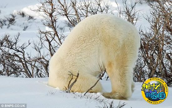 当时美国俄勒冈州波特兰市的坦格尼正和其他野生动物爱好者在加拿大哈德森湾度假。坦格尼说:“导游告诉我们,北极熊有时会听到雪地下旅鼠或者野鼠活动的声音,然后把它们的头扎入雪地捕捉。因此,当我们看到这只北极熊头朝下时,我们以为它在觅食。