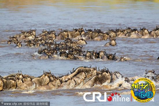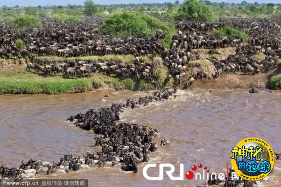 英国兄弟威廉和马修·伯拉德-卢卡斯日前从伦敦前往非洲进行了为期12天的探险之旅,他们在塞伦盖蒂国家公园和马赛马拉国家保护区之间的马拉河畔拍到了230万只牛羚大迁徙的壮观景象。