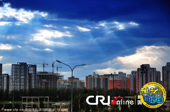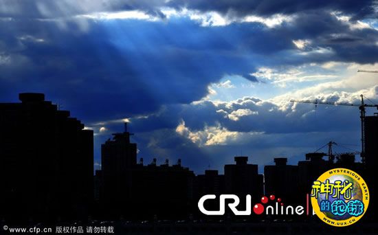 北京上空出现"光瀑"景象 来源: 蜘蛛网 时间:2010年10月03日 16:26 2010年10月2日傍晚,阴转多云天气,北京上空出现了“光瀑”景象,乌云挡不住太阳的光芒,随着太阳逐渐西下,光芒亦真亦幻千变万化。 CFP 上一篇 下一篇 TAG: 光瀑