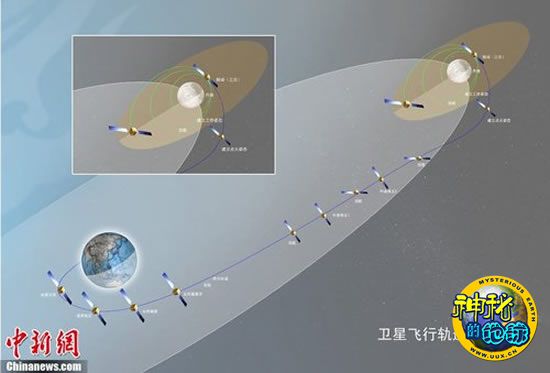 “嫦娥二号”奔月飞行约112小时,在此期间将进行2-3次轨道修正。当卫星到达月球附近特定位置时,实施第一次近月制动,进入近月点100公里、周期12小时的月球椭圆轨道。再经过两次近月点制动,进入高度100公里的极月圆轨道。在完成在轨测试和技术验证后,“嫦娥二号”卫星将进入100公里×15公里绕月椭圆轨道,拍摄“嫦娥三号”月球虹湾预选着陆区图像,并验证快速测定轨等相关技术。1-2天后,卫星返回100公里轨道,开展科学探测任务。