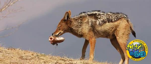 赶走了秃鹫,豺独自享受着美食