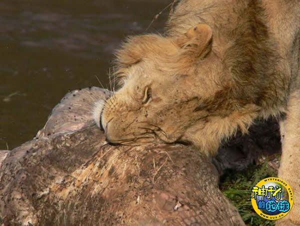 狮子吃鳄鱼尸体