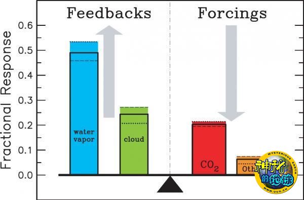水蒸气和云层是形成地球温室效应的主要因素,但对于最新大气—海洋气候模型的研究表明,地球的温度最终取决于大气中二氧化碳的含量。