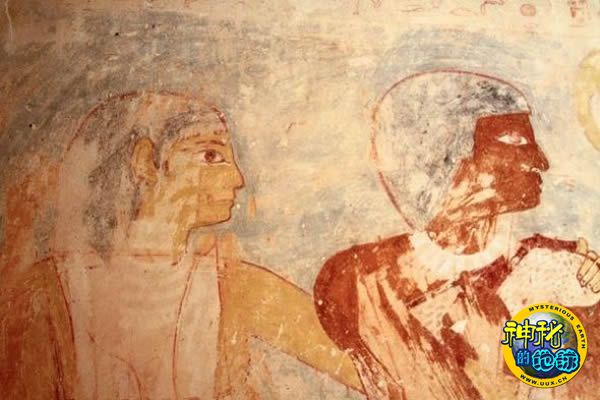 埃及一座新发现坟墓的壁画,展现了墓主人鲁吉-卡(Rudj-Ka,右侧)和他的妻子。考古学家表示,鲁吉-卡可能生活在古埃及第五王朝末期,距今大约4350年前。这座精雕细琢的古墓是在吉萨大金字塔附近一个悬崖内发现的。考古人员在墓内发现的一系列艺术品和文物证明鲁吉-卡是一名祭司,掌管第四王朝法老王卡夫拉的祭祀仪式。卡夫拉于公元前2558年至公元前2532年统治埃及,最著名的地方就是建造3座大金字塔中的第二座以及狮身人面像。