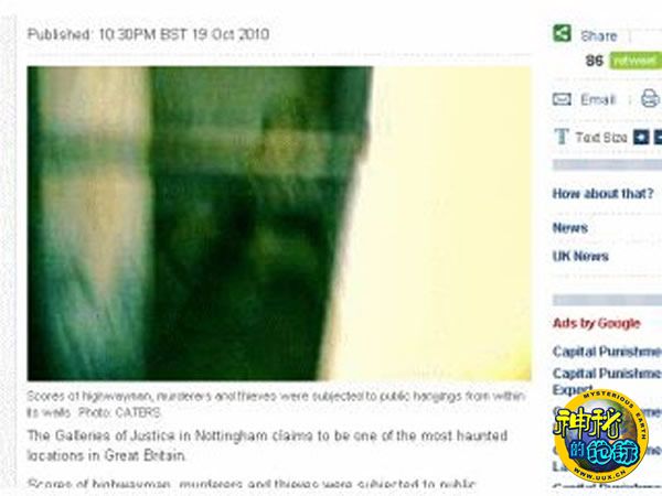 游客在英国诺丁汉司法博物馆拍到疑似鬼影的照片