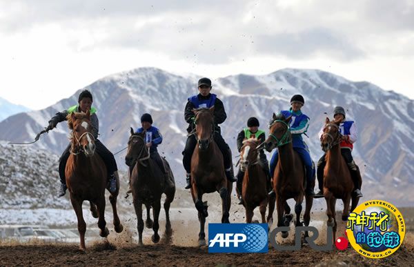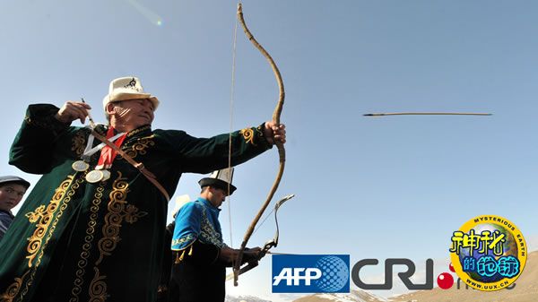 吉尔吉斯斯坦猎人在狩猎节上比拼箭术。