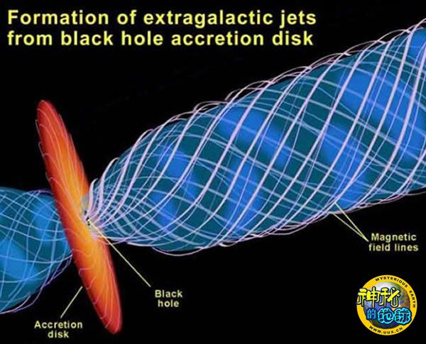 产生极地射流的物理现象目前还没有得到合理的解释,这很可能是在一个旋转的吸积盘内产生磁力线形的扭曲力,我们观察到等离子通道从压缩的吸积盘中心演变成窄射流。但究竟是什么能量传递给了喷射流,以如此快的速度逃逸,还有待明确。