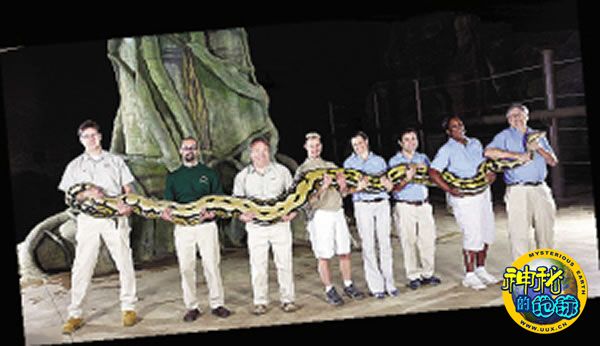 据悉,有记载以来,全球最长的圈养活蛇是1912年印度尼西亚抓到的一条长32英尺(约合9.75米)的蛇。