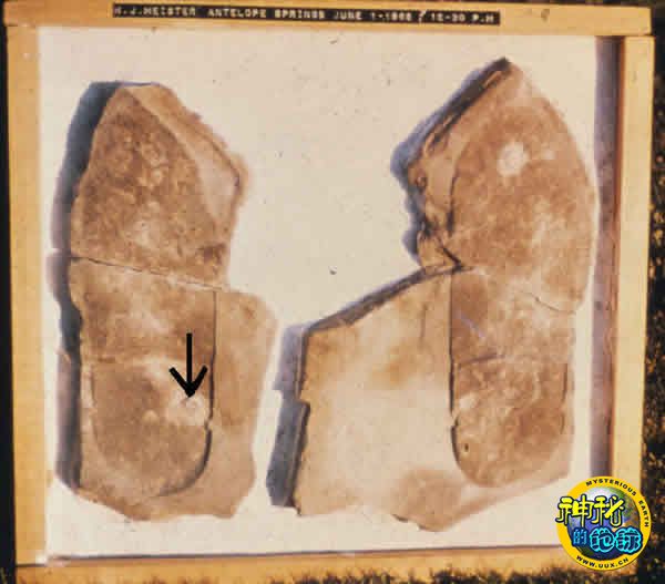 最为奇特的发现,是在美国犹他州羚羊泉。业余化石爱好者米斯特于1968年6月发现了几块三叶虫化石。他叙述说,当他用地质锤轻轻敲开一块石片时,石片“像书本一样打开,我吃惊地发现,一片上面有一个人的脚印,中央处踩着三叶虫,另一片上也显出几乎完整无缺的脚印形状。更令人奇怪的是,那几个人穿着便鞋!”