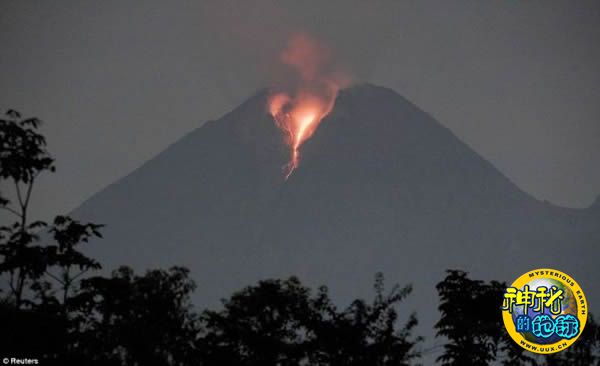 31日,默拉皮火山再度喷发,随着火山灰云沿山坡飘下