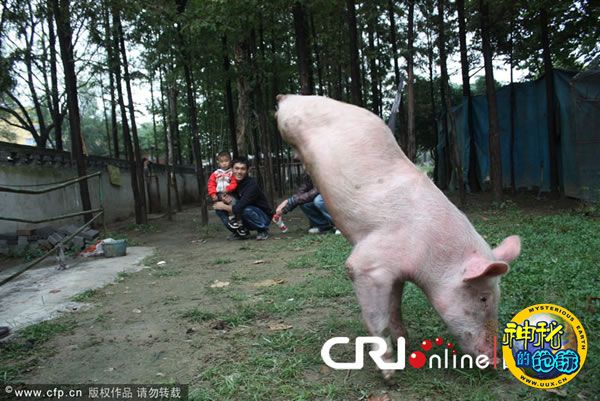 王希海介绍,刚开始这头猪因为身体轻,倒立时至少可能围院子走3圈。后来,随着它身体越来越重,在表演倒立绝技时,显得力不从心。