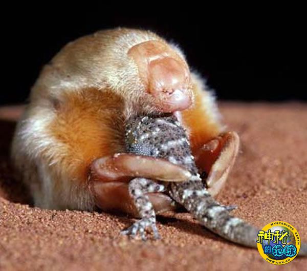 然而,金毛鼹是一种有胎盘的哺乳动物,袋鼹却不是。这两支不同的哺乳动物类群来自1.25亿年前的一个共同祖先。虽然从此金毛鼹和袋鼹分开了,但相近的生活习性使得它们的解剖特征非常相似。