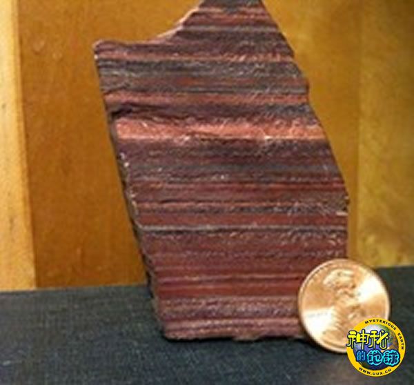 古海水中的磷保存在象图中这个条带状铁构造中的一个陡然增大的峰值表明了古冰期与大型、活跃动物的兴起之间的一种关联。