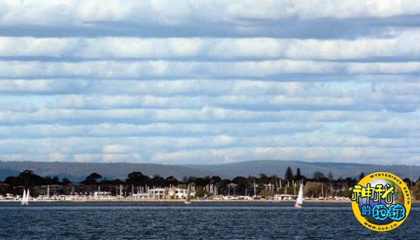 故事:2009年7月5日,澳大利亚科庭大学退休生物学家约翰-特尔尼在位于他家附近的天鹅河畔散步时,突然发现天空中出现壮观的云街现象并深深为之吸引。特尔尼表示,“这种图案并不罕见,但是我还从来没有见过这样一幅如此美好、壮观的景象。”特尔尼的这幅照片被选为2011年年历的12月图案。云街是一种积云或属于积云之类的云在天空中平行排列的现象。被地表加热的潮湿空气上升后开始冷却,其中的水蒸汽被转化成小液滴或云。空气和云被一层更温暖的空气所阻拦而无法继续上升,并在这层温暖空气的作用下形成水平、平行的直线形状。