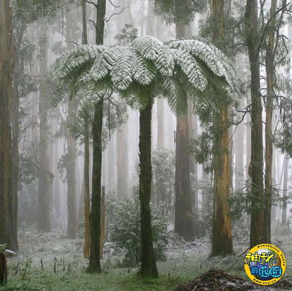 故事:澳大利亚气象局气候学家大卫-琼斯于2008年8月10日拍摄了墨尔本以东40公里处丹顿农山脉一场罕见的持续性降雪时的美景。大卫-琼斯是一个气候分析团队的负责人,他不仅仅记录下丹顿农山顶森林和蕨类植物的雪景,还对造成这场三小时内降雪量达10厘米的罕见气候的各种原因进行了评估和分析。琼斯回忆当初的情景时表示,“当时雾浓云低,景色非常美妙。”后来,琼斯还和他的小儿子一起堆起了一个雪人。他对丹顿农山如此多的降雪感到惊讶,并感叹在全球持续变暖的情况下他的儿子仍可欣赏到这份美景。