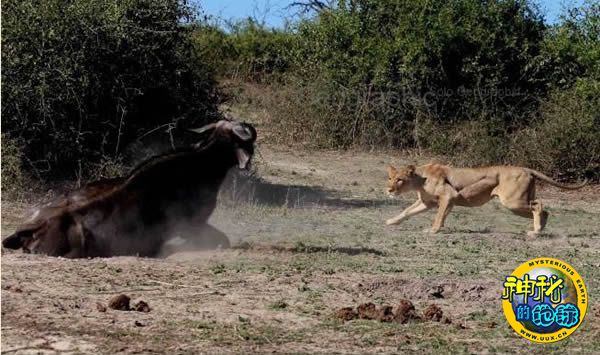 母狮猎杀野牛