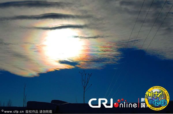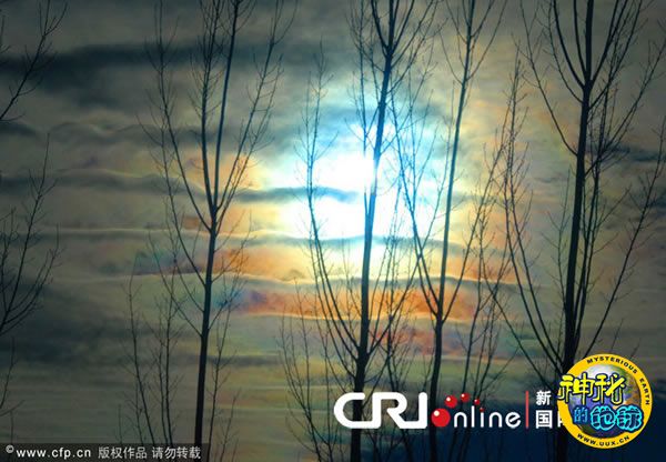 新疆阿勒泰市区上空出现五彩缤纷的彩云 来源: 蜘蛛网 时间:2010年11月22日 22:33 新疆阿勒泰市区上空出现五彩缤纷的彩云 新疆阿勒泰市区上空出现五彩缤纷的彩云 2010年11月20日上午11时左右,新疆阿勒泰市区上空出现了一片五彩缤纷的彩云,十分引人注目。这一奇妙的景象持续了几分钟后,开始慢慢消失。 据了解,出现的彩云是太阳光线和云彩中的冰晶结构产生的光的折射现象,原理是在合适的天气状况下,太阳光正好和云构成一个合适的角度,太阳光通过云彩时,通过折射和反射作用,上空云彩内的水汽将太阳光谱分离,从而散射出七色光芒。 CFP 上一篇 下一篇