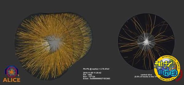 参加ALICE铅离子对撞实验的物理学家来自英国伯明翰大学,铅离子以尽可能高的能量加速和碰撞,最终ALICE实验产生令人难以置信的炽热密集亚原子火球,重建了宇宙大爆炸之后几微秒出现的状况。科学家证实这种微型宇宙大爆炸能形成数十万亿摄氏度的温度。