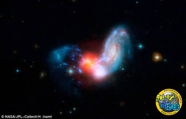 天文学家认为,这也许是在远离合并的母星系中心位置发生的最明亮的星爆。由于被大量的尘埃所遮挡,星爆中形成的恒星在其他波段几乎是看不见的。这次两个星系的合并可以帮助天文学家看到银河系未来在45亿年后的命运。届时,银河系将有望并入最邻近的巨型星系仙女座星系中。