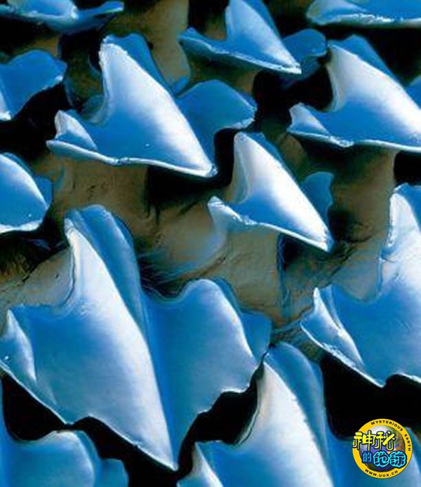 “鳞片会影响体表水流的分布,这和我们设计飞机时要注意的流体分离现象一样,这种现象会引起漩涡,降低运动速度和稳定性。”来自阿拉巴马大学(University of Alabama)的A.Lang说:“动物体表并不是完全光滑的,有各种各样的纹路,而这些纹路的作用之一就是控制水流或气流。这就好比高尔夫球上的凹洞能让球飞得更远一样。我们认为鲨鱼身上的鳞片也起到了相似作用。”