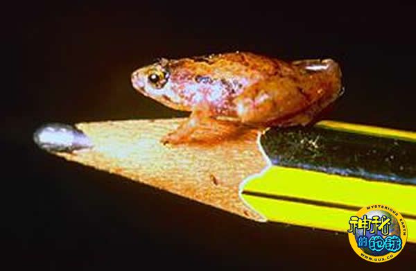 美国《时代》周刊评选出2010年十大新物种 来源: 蜘蛛网 时间:2010年12月12日 15:09 芝麻大小的青蛙 芝麻大小的青蛙 小青蛙也能闹出大动静。这是在婆罗洲的森林中进行考察的马来西亚和德国科学家们的感受。当时他们正试图弄清森林中那些刺耳响声的来源。这种声音常在日落时分出现。科学家们循声而去,敲打树叶,看看是否里面藏着什么东西。接下来,他们便看到一群古铜色的小青蛙跳了出来,它们体长仅有大约1厘米,这是人们已知最小的成年蛙类,真正叫“芝麻大小”。要想象它们到底有多小,如果你将一只这样的青蛙放在一枚硬币一头,它还得一大跳才能到另一头。 上一页12345678910下一页 上一篇 下一篇