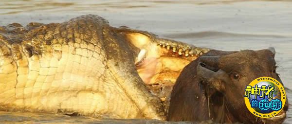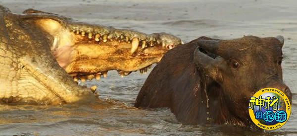 鳄鱼张开了血盆大口,给小水牛留下最后一次逃生的机会,但它并未把握住