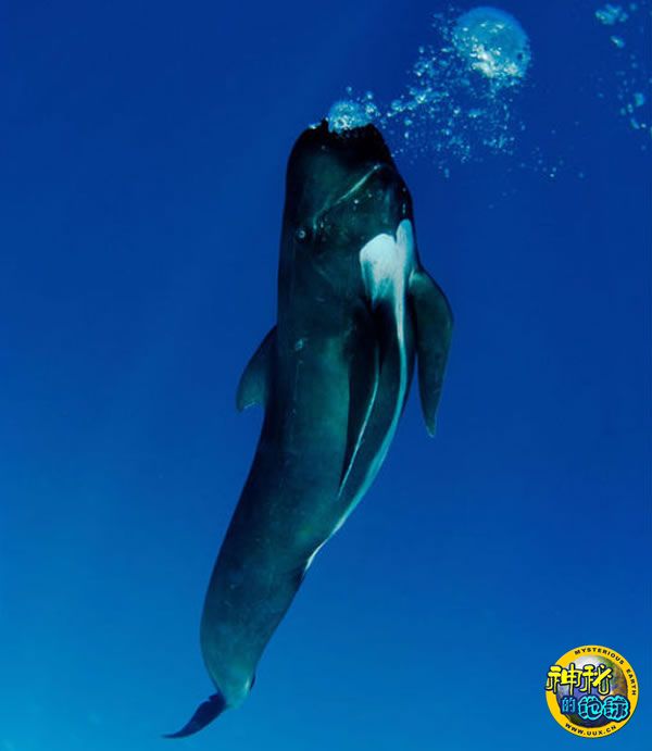 这种海豚体长达20英尺(约6米),有一个很短,勺子状的前鼻,外表看上去就像一个很大,很高且突出的前额。