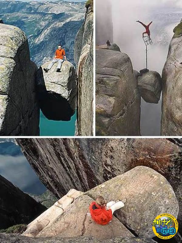 奇迹石座落于挪威谢拉格山,面积在5平方米左右,它像楔子一样楔入两个巨大的岩石中间。奇迹石是一个较为稳定的平衡岩,但这绝不意味着它是一个完美的休息之所。如果不信,不妨问一问阿伦·拉斯顿。在犹他州的蓝约翰峡谷,他的手臂被卡在类似的岩石之中,最后不得不断臂逃生。