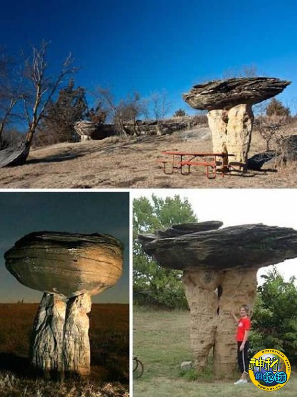 蘑菇岩州立公园位于堪萨斯州的烟山地区,虽然面积只有区区5英亩(约合30公里),但这里却拥有地球上一些最怪异的平衡岩,比如蘑菇岩。蘑菇岩就像是一个巨大无比的蘑菇,看着它,小孩子可能认为《爱丽丝梦游仙境》中抽着水烟袋的毛虫就躺在上面休息。