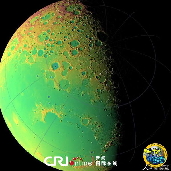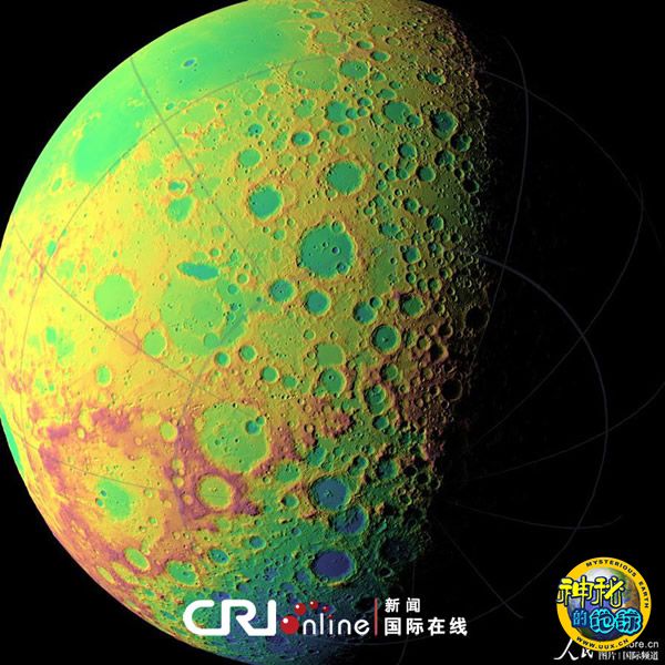 图片展示了月球勘测轨道飞行器携带的月球轨道飞行器激光测高仪(LOLA)对该地点进行的高度测量。科学家称,月球勘测轨道飞行器使研究者能制造出最精确且最完整的月球地形图。红色代表月球最高点,蓝色代表最低点。