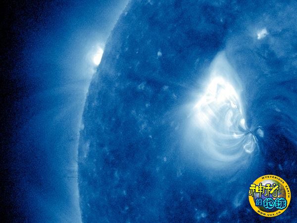 这张紫外线图像中可清晰地看到太阳磁场线地图与太阳黑子爆发地点交织在一起。