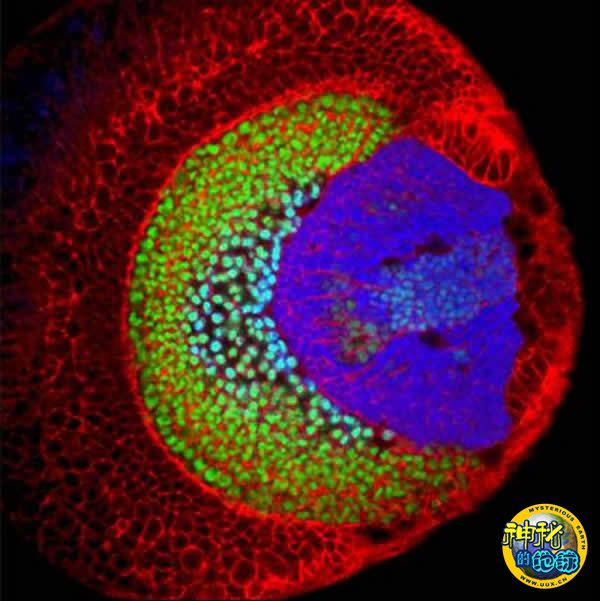 评委点评:荧光呈现良好形态结构,绿色荧光极易跳入人的眼帘,宛如一轮弯月