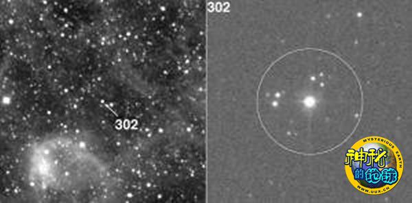 左图为地面观测站拍摄的Star 302,右图为哈勃拍摄的Star 302