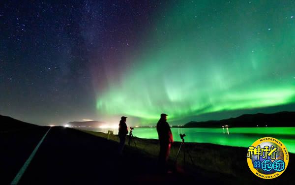 哈尔福奥尔峡湾,摄影师们在数码相机聚光时耐心等待,他们的眼前是大幕般的北极光