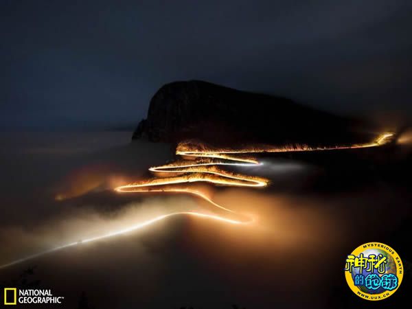 这是安哥拉的标志性景观塞拉达莱巴。过去几十年,这里的风景一直出现在该国的明信片上,不过那些都是在白天拍摄的。我想来点与众不同的。我决定拍摄该地的夜景。但这似乎很难实现,因为这里漆黑一片、还有大雾,而且海拔高达1800米。我的佳能相机的曝光时间最长只有60秒。然而一辆车需要花几分钟才能走完这段路。浓雾也对拍摄有影响。就在这时,浓雾突然散开,一辆车上山,另一辆车下山,60秒内它们在中间汇合,这张令人难以置信的照片就这样诞生了。